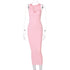 Featuring a sleek, tank-style top, a daring neckline, and a figure-hugging silhouette that flows into a graceful floor-length skirt, this maxi is designed to make you feel confident and beautiful. Whether you’re strolling the beach, attending a garden party, or enjoying a romantic dinner, this dress is versatile enough to capture the essence of both day and night charm.