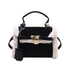 Our Sheep handbag is the defintion of chic, structured satchel with a sophisticated black velvet exterior and contrasting plush white shearling trim. It features a classic top handle design with an additional detachable shoulder strap for versatile carrying options. The bag is secured with a prominent gold-tone metal lock closure, adding an element of luxury. Its compact yet functional size makes it suitable for both day and night use, seamlessly blending elegance with a touch of whimsy.